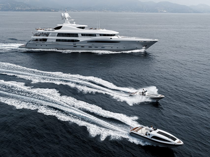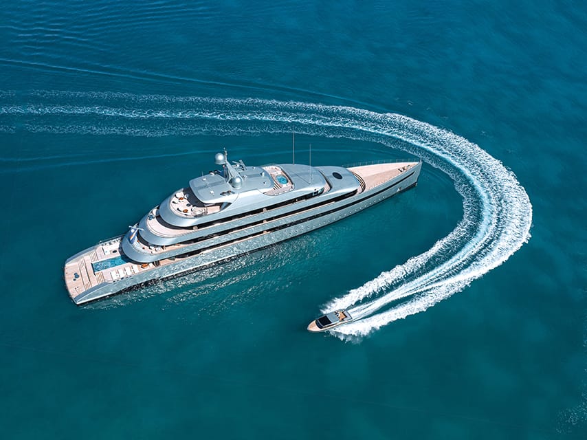 Meanwhile, VENTUM MARIS, the 66m Amels 212 from the Dutch yard’s limited-edition series, is offered in turnkey condition, and with her touch-and-go helipad and custom Yachtwerft tenders, broker Tomaso Polli describes her as the “pinnacle of luxury.”