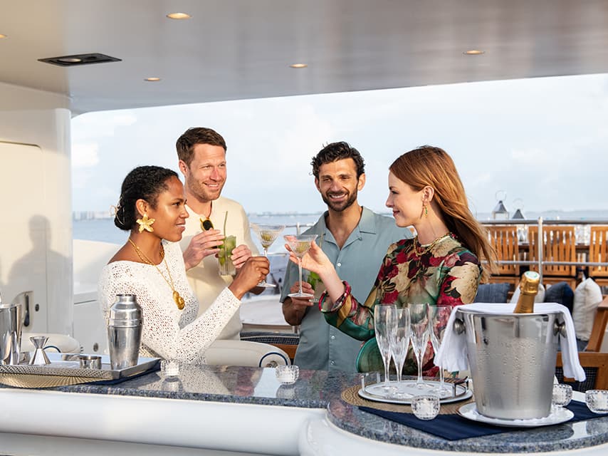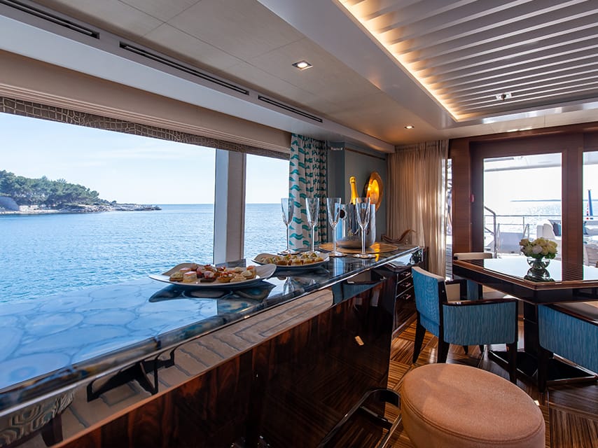 Make the Caribbean your destination of choice this New Years on a luxury yacht charter with Edmiston. VENTUM MARIS features a swim-up wet bar, for when you’re ready for a refreshment and an al fresco dining area which basks in panoramic views for a sunset dinner with friends and family. SAMADHI offers an oversized sun deck, which features a barbecue area for casual dining and ample space on the aft and sun deck for an evening filled with drinks, music, and celebrations.