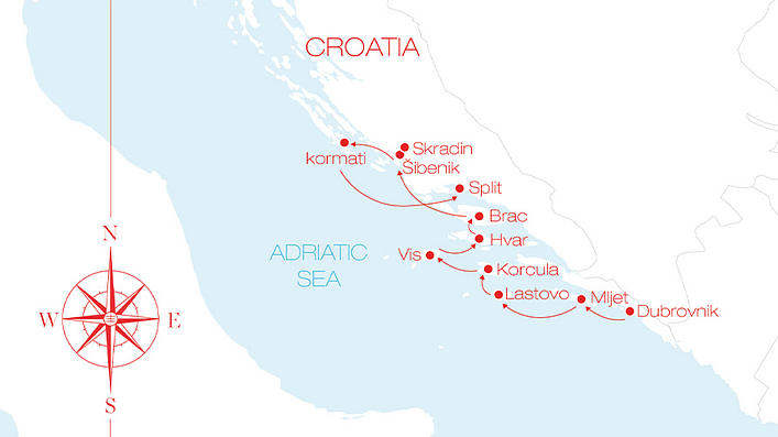 10-day charter itinerary of the Dalmatian Coast: Dubrovnik to Split