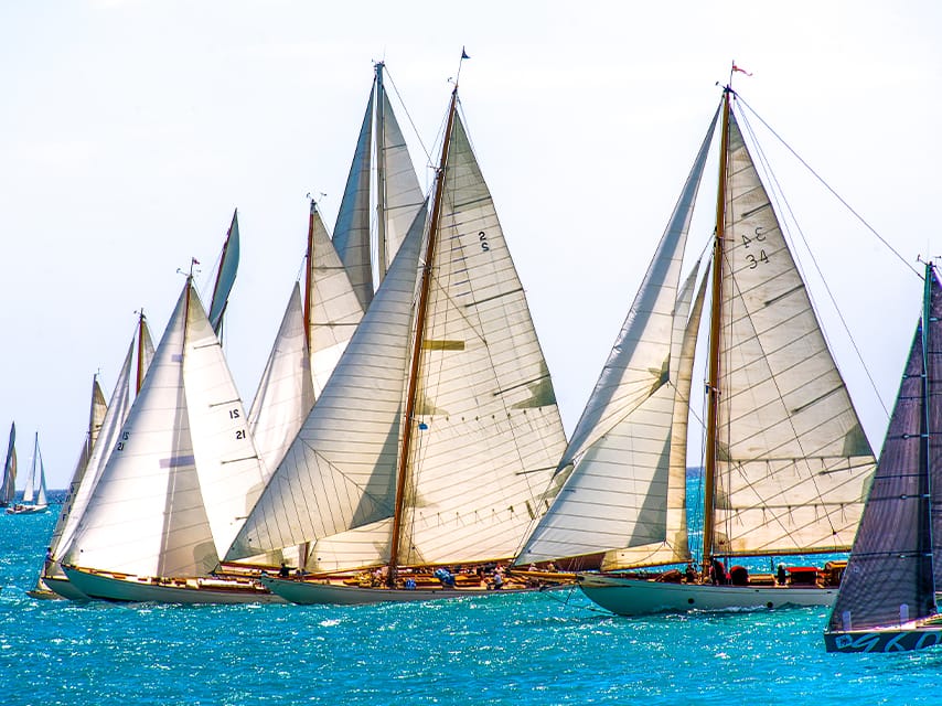 There are three classifications of yachts that take part each year in Les Voiles d’Antibes: vintage yachts (‘Yachts d’Epoque’), which must have been built before 1950; classic yachts (Yachts Classiques’) dating pre-1976; and yachts built from the late 19th-century onwards (‘Yachts Esprit de Tradition’).