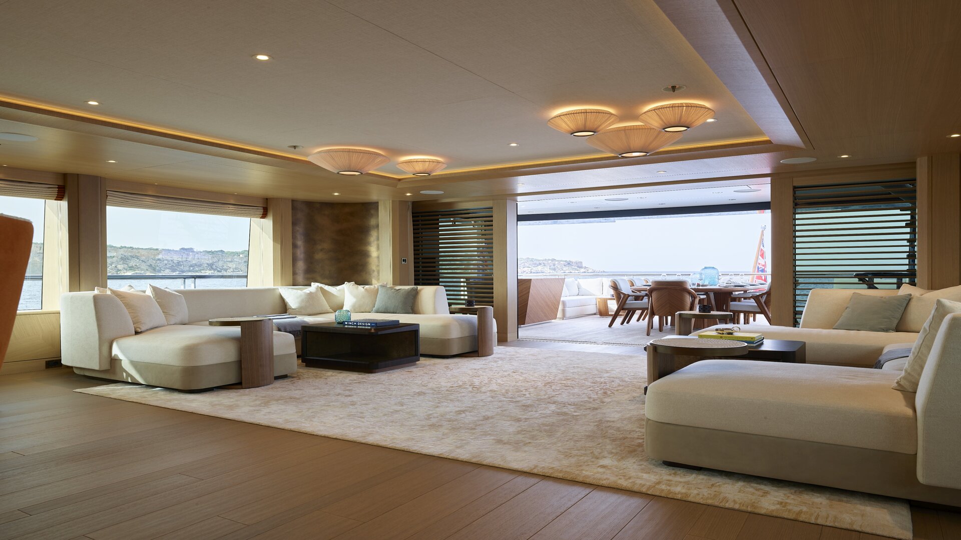 - Vast 27m sun deck with Jacuzzi, sun pads, bar, dining area and open-air cinema for movie nights
