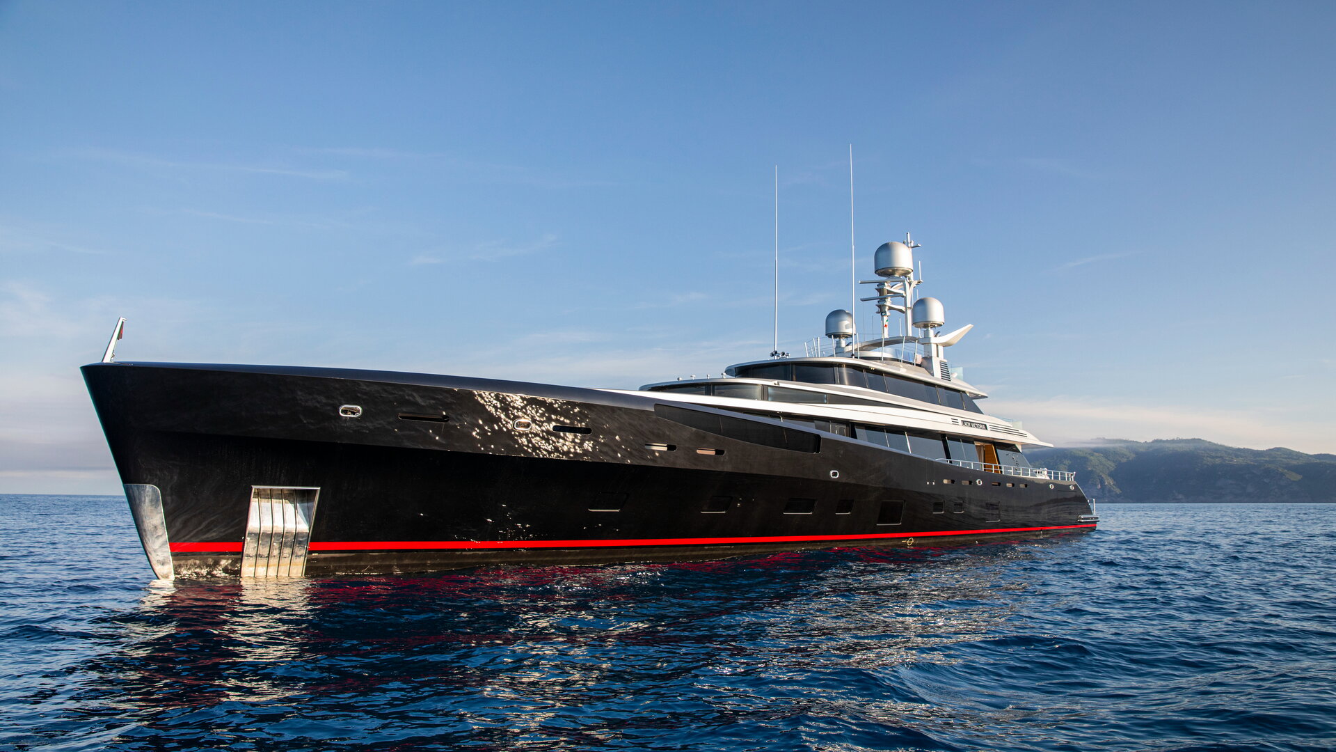 The large alfresco dining space on the main deck aft is comfortably fitted with a large sofa and daybeds aft, while steps bring you down to the generous swim platform that can be extended and raised for diving, or submerged for guests wishing to step into the sea.