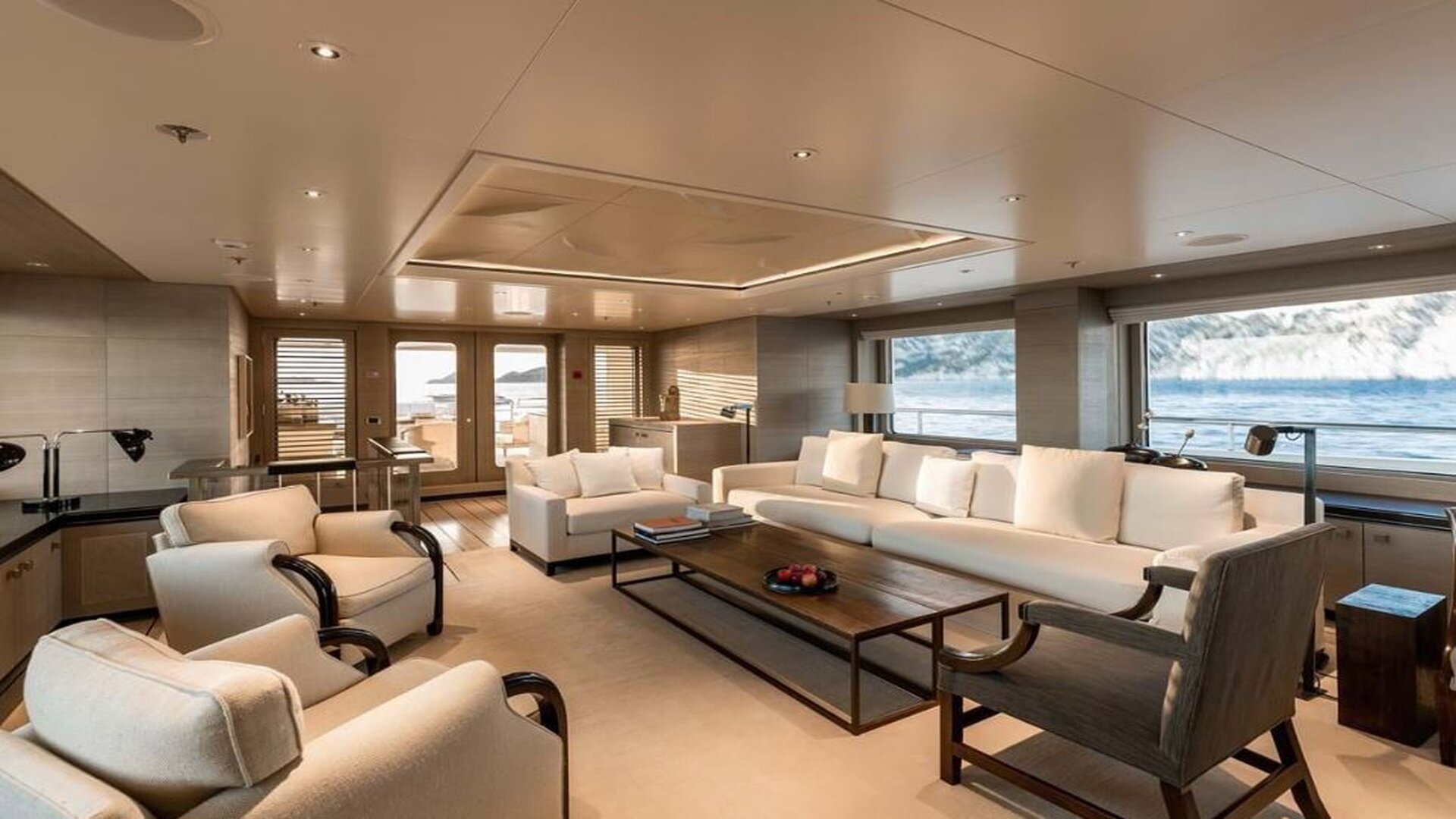 Out on deck, guests can spend lazy days onboard her sun deck, where sunpads fringe the forward Jacuzzi, or dine beneath the shade of the hardtop.