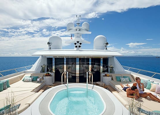 Long days round the sun deck Jacuzzi aboard 46m motor yacht MYSTIC can be rounded off with a barbecue and sundowners before guests retire to one of the two master cabins.